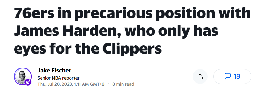 Fischer在报道中写道:“哈登是未来的名人堂成员,入选75大球星,他还是得分王和MVP……联盟消息人士透露,如果哈登交易的事情拖到9月,甚至拖到10月2日的媒体日,哈登预计将前往76人的训练营报到。与待在家里相比,你出现在想要离开的球队中,可能会给球队带来更大的麻烦。效力火箭和篮网期间,哈登多次离队参加各种夜生活,他让篮网觉得别无选择,只能在2022年交易截止日前把他送往76人,否则就有白白失去他的风险。而在费城,哈登的团队相信去快船不存在是否加盟的问题,而是何时加盟的问题。”