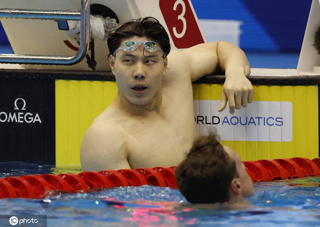 男子200米蛙泳半决赛,中国双星覃海洋、首次参加世界大赛的董志豪都被分在了第二小组,覃海洋的出发反应时是0.65秒,前145米都一直处于领先,直到最后50米才被后程能力强大的库克超越,最终以2分07秒70排名半决赛第二,董志豪以2分08秒47的成绩打破世界青年纪录,排名第四,两人携手晋级,卫冕冠军、东京奥运会冠军、世界纪录保持者库克排名第一。