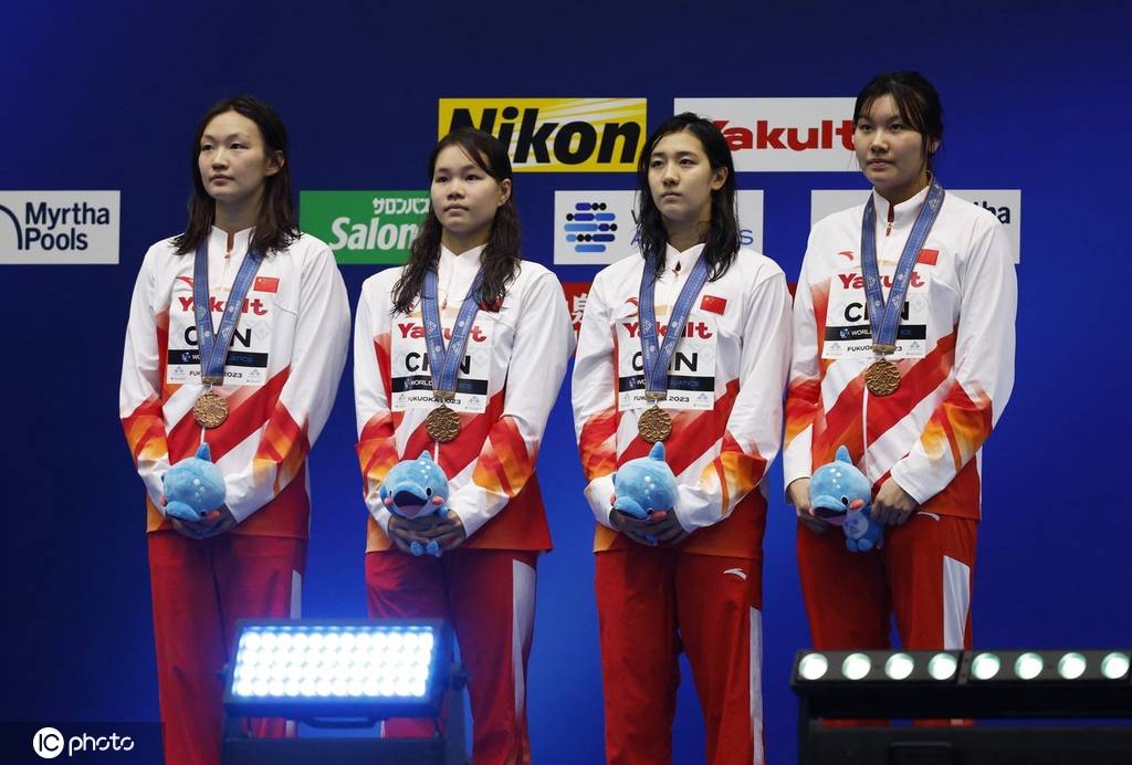 游泳比赛在福冈海洋会展中心进入第五个比赛日。女子4x200米自由泳接力决赛,中国队更换了两名选手,派出李冰洁、李家萍、艾衍含、柳雅欣,第一棒李冰洁在最后50米将排名提升到了第二,第二棒李家萍正面PK莱德基和麦克托什,莱德基入水后将与澳大利亚队之间4米的差距缩短到了0.5米,艾衍含入水时中国队掉到了第四位,美国队的第三棒西姆斯则和澳大利亚队的特洛塞尔打了个平手,最后一棒的柳雅欣面对蒂特姆斯和夏克凯尔,蒂特姆斯逐渐甩开了澳大利亚队占据领先,最后50米柳雅欣反超英国队的第四棒安德森,帮助中国队以7分44秒40的成绩拿到一枚宝贵的铜牌!澳大利亚队以7分37秒50的成绩打破了自己保持的世界纪录,继2019年之后历史第二次夺冠,8冠王美国队以7分41秒38的成绩获得银牌。