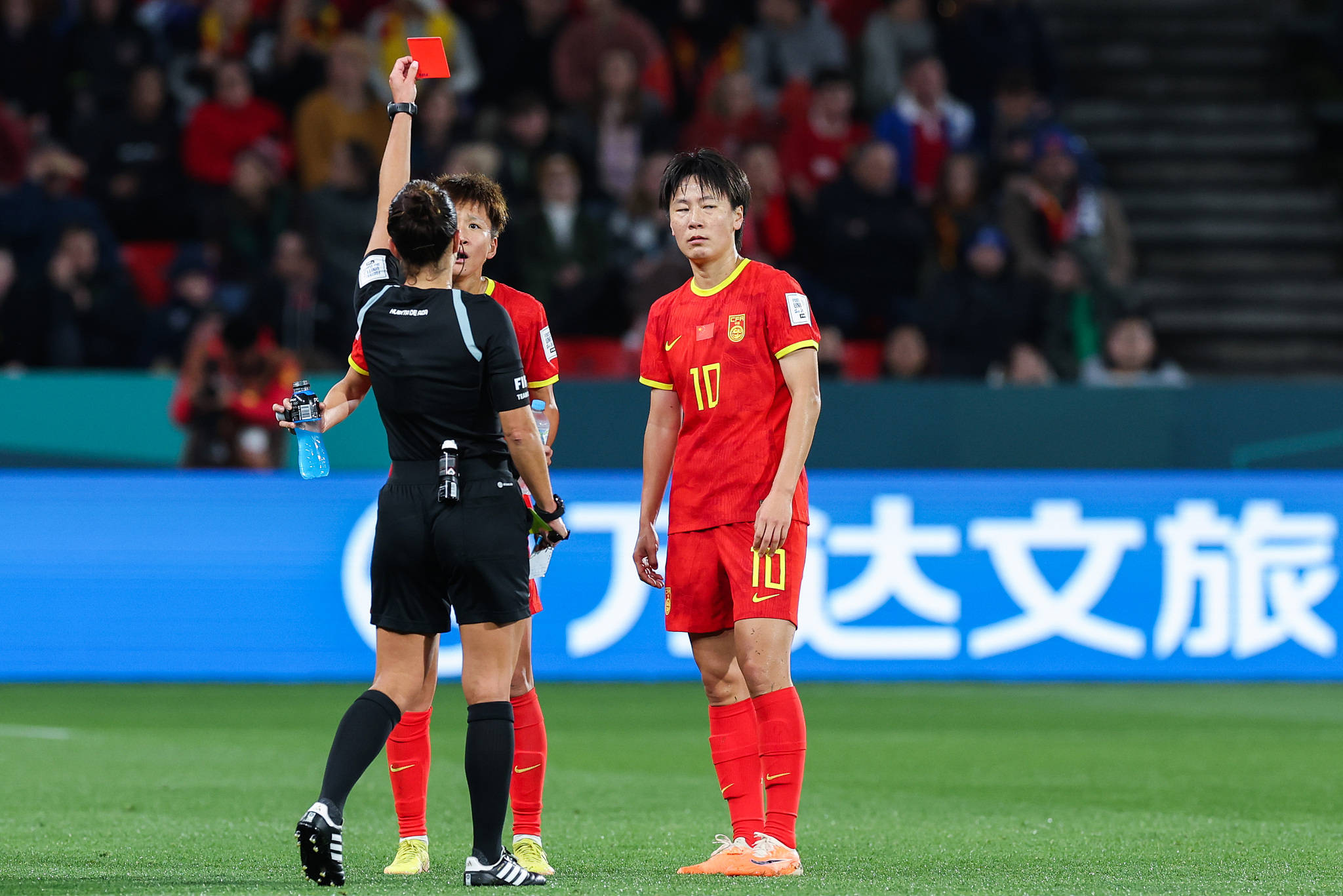 第27分钟,老将张睿在前场一次防守中,蹬踏对手膝部犯规,主裁判向其出示黄牌,随后VAR介入,经过回看主裁判取消黄牌,向张睿直接出示红牌罚出场;第32分钟,蒙代西尔左路连续晃开两名中国队防守球员,传出一脚似传似射的传中球,朱钰在门前将球抱住;