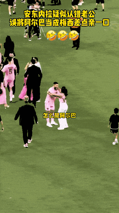 2-0获胜,联赛连败终于被终结,迈阿密国际上下都非常开心。梅西带领队友谢场,他们和球迷一起分享快乐,这时候女主角出现了。安东内拉带着孩子们进入球场找梅西,她轻松摇摆着直冲“梅西”而去。这时候,男主角来了,但他并不是梅西,而是球王好友阿尔巴。安东内拉似乎没有看清阿尔巴的面容,她冲上去给了一个大大的拥抱,正准备亲上去的时候吓了一跳。