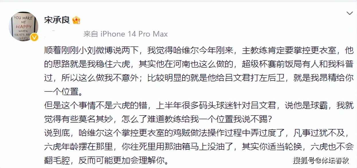近日,据某S姓上海足球媒体人爆料,哈维尔刚在海港队上任时,曾试图稳住队内的“六虎”,这其中大部分都是崇明系的核心球员。他甚至将前锋球员吕文君改造成了左后卫,试图通过调整主力阵容获得更多的球队控制力。