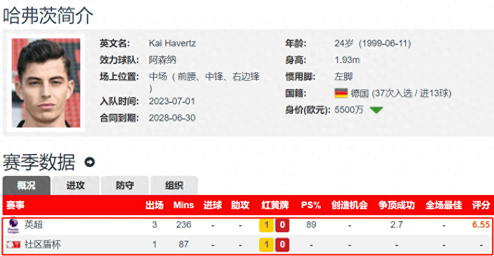 如此高转会费+高薪的哈弗茨到了阿森纳有何发挥呢?3场英超+1场社区盾杯,0个进球,0次助攻,有2张黄牌。又为什么说哈弗茨成为阿森纳新的顽疾呢?因为阿尔特塔非要用好自己钦点的兵-哈弗茨,场场给他首发,结果是没有身体对抗、没有速度,在场上游离于全队战术之外。不好用、用不好、硬要用,哈弗茨成为阿森纳的最大问题,这个问题还会持续,因为阿尔特塔是不撞南墙不回头,肯定还会继续重用哈弗茨。