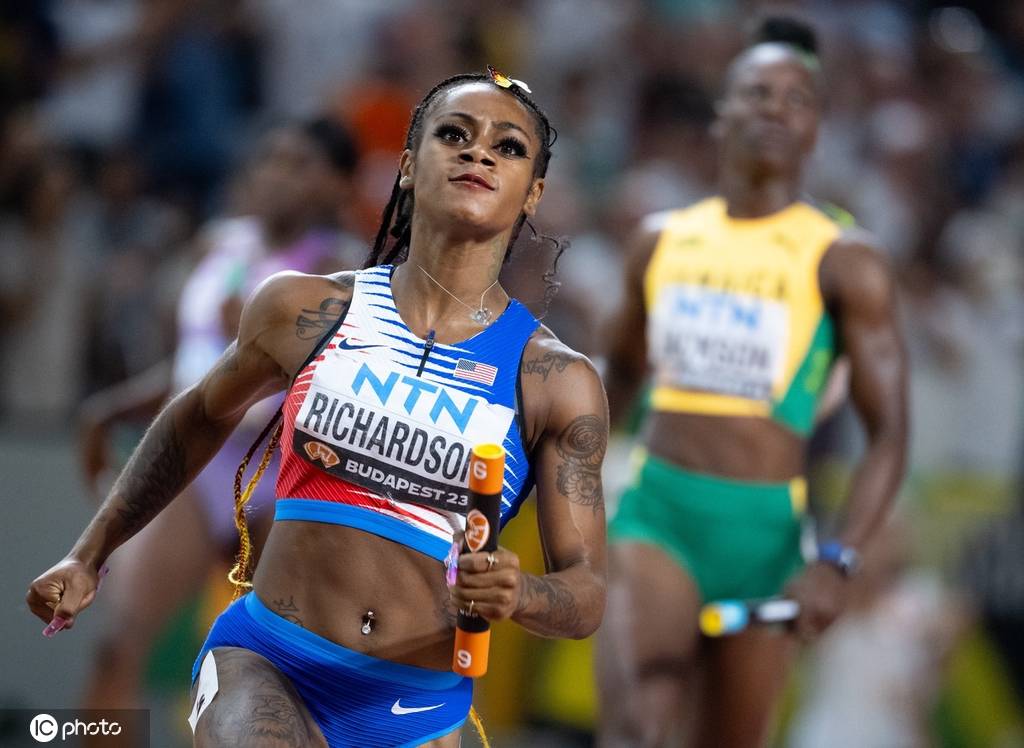 女子4x100米接力上演美国与牙买加的巅峰对决,美国队派出了塔玛里-戴维斯、特瓦尼莎-特里、加布丽埃尔-托马斯和沙卡里-理查德森,牙买加队则派出了娜塔莎-莫里森、弗雷泽、莎莎丽-福布斯和谢丽卡-杰克逊的王牌阵容,最终美国队更胜一筹,以41秒03的成绩同时刷新世锦赛纪录和年度世界最好成绩,实现了世锦赛四连冠,牙买加队以41秒21的成绩创造赛季最佳获得银牌,英国队获得铜牌,成绩同样创造了赛季最佳。