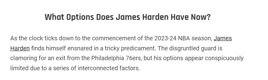 美媒表示,哈登的选择太少了。“这位心怀不满的后卫强烈要求离开76人,但由于一系列相关联的因素,他的选择明显受到限制。”