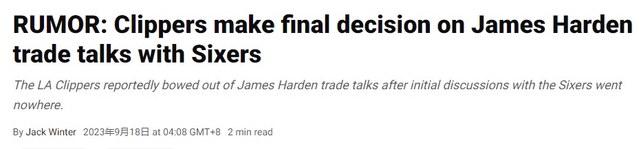北京时间9月18日,名记Windhost表示,是快船提出结束哈登的交易谈判。此前有报道称,76人坚持索要高价,包括快船在内的球队都无法或者不愿满足,最终,哈登的交易谈判宣告破裂。那么问题来了,加盟快船看来已经没戏了,哈登下一步该怎么办?