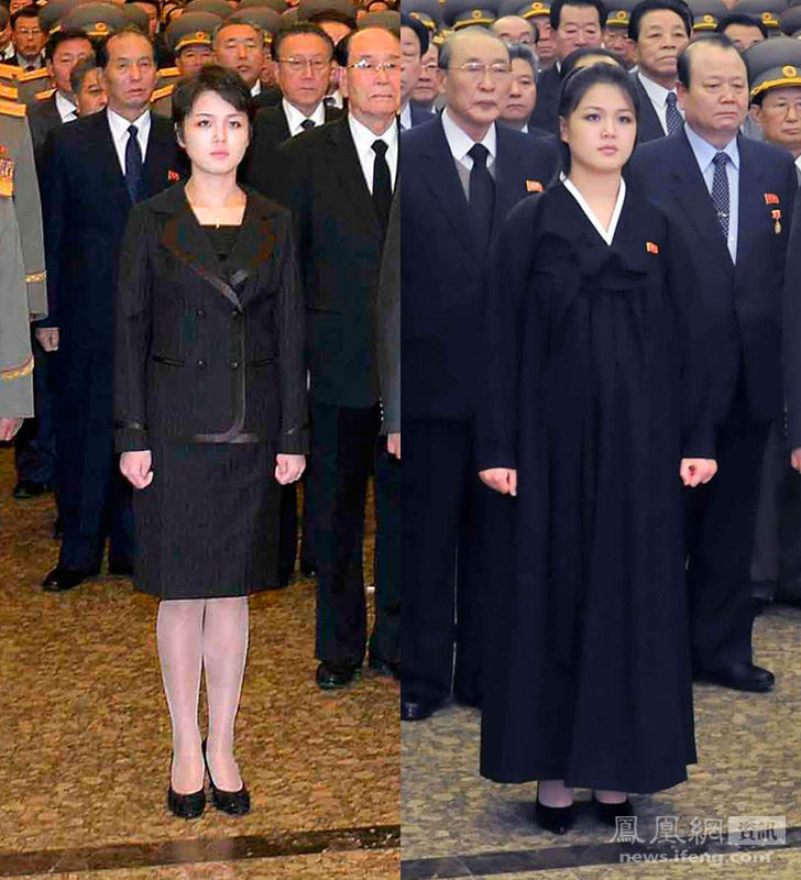 (左图)2013年12月17日,金正日逝世2周年之际,李雪主随金正恩参谒了金日成和金正日遗体的锦绣山太阳宫。(右图)为2012年12月17日,金正日逝世1周年之际,李雪主随金正恩参谒了金日成和金正日遗体的锦绣山太阳宫。
