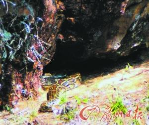 大埔县野生动物保护站站长康成埔证实,他们曾到当地调查,当时观察到一条蟒蛇在洞口活动,目测有两米多长,估计有30多斤重。他说蟒蛇已结束了冬眠,估计是出洞来觅食。