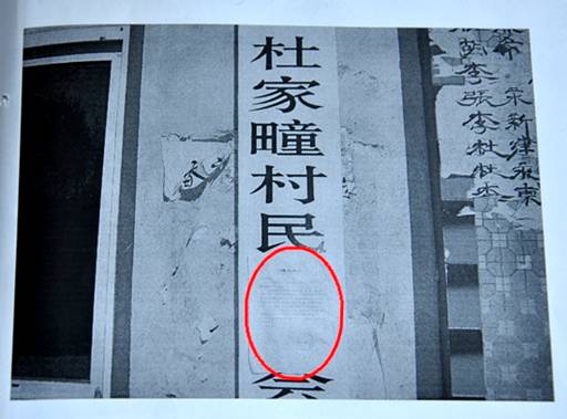 据平度市国土局相关负责人讲,2006年杜家疃村征地公告当时就贴在村委办公室墙上(图中红框部分),并有照片留存。