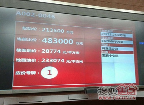 搜狐焦点独家:激战210分钟,深圳再出新地王