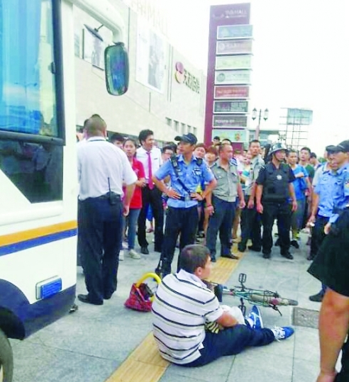 男子带小孩骑自行车闯广场遭阻拳打保安后遭围殴