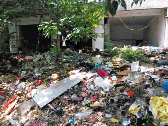 这个垃圾堆2006年开始形成,8年过去了,待拆房依旧没有动工,垃圾却越堆越多。