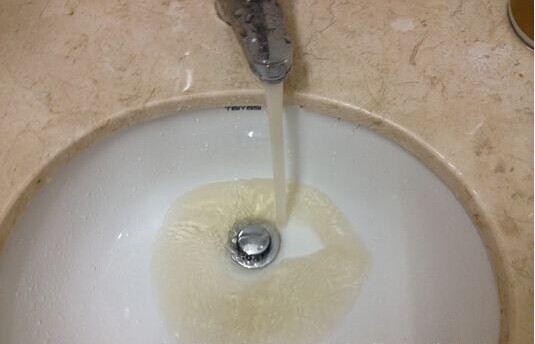 张小姐表示,昨晚下了一阵雨之后,晚上11点多又出现了这一现象,自来水变得浑浊不堪,根本无法饮用。“下雨天自来水就变得黄黄的,现在我家都不敢喝了,自来水只能用来冲厕所、洗衣服,有时候把白色的衣服染得一块块,太烦人了!”