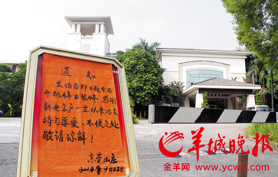 26日,记者来到东莞山庄,见山庄大门已上锁,外来人员被禁止入内。门前公示牌显示该山庄已于22日停业装修。山庄的保安经理一再强调:“停业与‘名单’无关”。