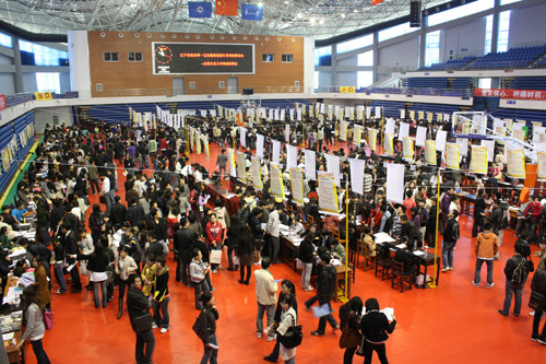 冬日太阳下,由省教育厅组织的第一场本科毕业生专场招聘会举行。昨日共285家用人单位,提供1.1万个岗位。
