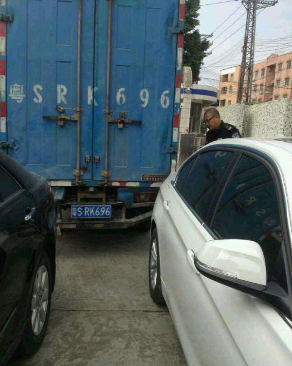 汤先生的朋友尹先生闻讯后,开着自己的宝马轿车赶来警务室帮忙协调。。不料,货车倒车时又不慎撞到宝马车车尾。(来源:南方网)