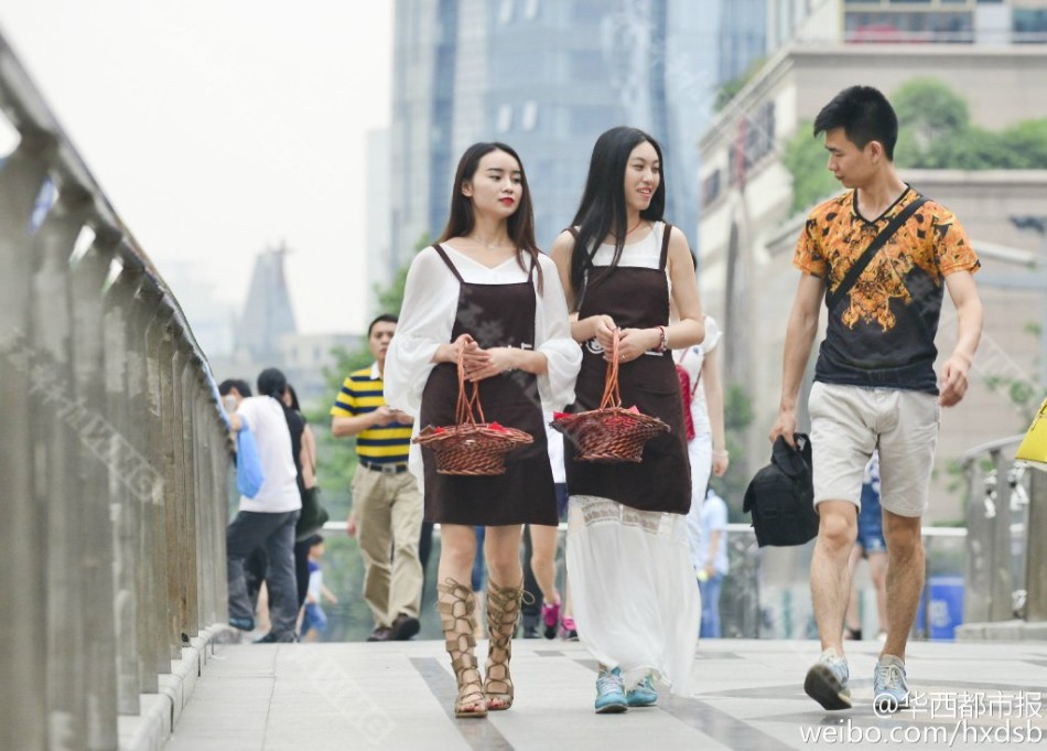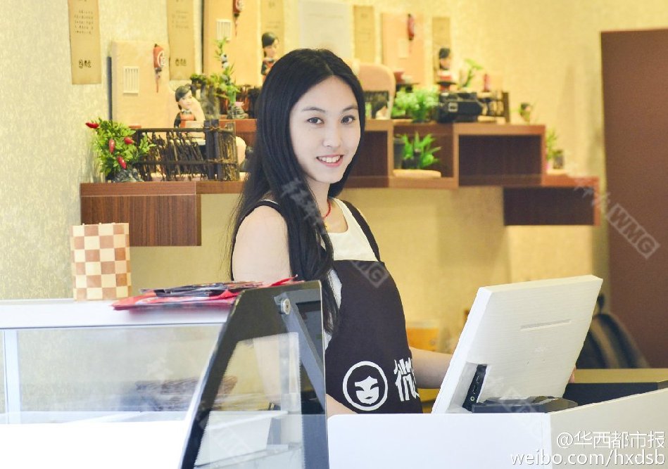最近成都爆红的某卤菜店,线上线下卖卤菜。美女店员全是大学毕业,颜值高、身高均在1米7以上,绘画、跳舞、主持各有所长。店员小悦是国标专业学生,送外卖时,她时常为客人跳国标舞以示感谢。她们的底薪每月5500元。(华西都市报记者吕甲)