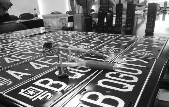 →昨日上午,虎门警方展示缴获的假车牌和弹弓。