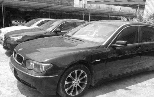 →警方缴获的3辆作案车辆,涉案的宝马7系车就是玩“碰瓷”的道具。