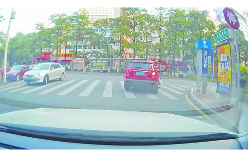车子开到盈翠西路时,一辆“粤S”牌照的SUV型别克车从阜康大厦的苏宁电器停车场方向驶出,右转进入盈翠西路,李先生家的车子跟在这辆别克车后面。