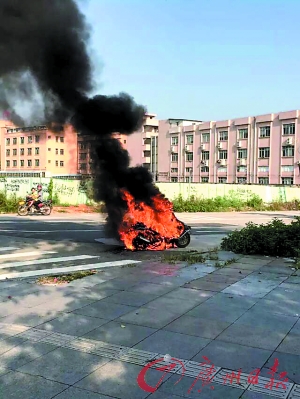 天气炎热,车子也“上火”——昨晨8时45分,桥头镇田头角村与常平镇交界路段,一辆摩托车自燃,被闻讯而来的消防员扑灭,所幸无人受伤。