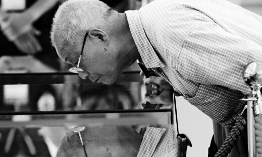 昨日,集邮展上,一位老人家正在专注地欣赏抗日纪念邮票。记者 刘媚 摄