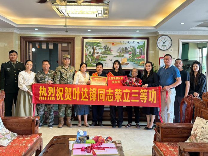 为进一步褒扬立功受奖现役军人功绩,12月15日,寮步镇人民武装部、退役军人服务中心和富竹山村等一行人组成“报喜团”,共同为荣立三等功的现役军人叶达锋家属送去喜报。