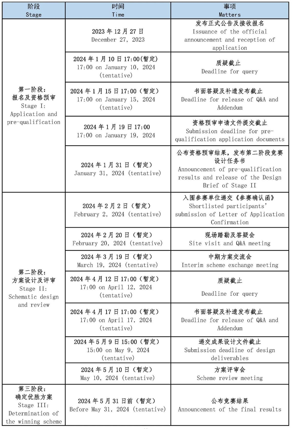 本次竞赛分为 “报名及资格预审”“方案设计及评审”“确定优胜方案”三个工作阶段。