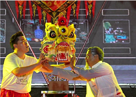 樟木头百果洞社区麒麟队队员黄越科:“我们的节目是以一个故事的形式去表演,讲述的是我们三代人的传承。樟木头的麒麟文化,大概从明朝开始一直延续到现在,几百年来都是祖祖辈辈相传下来。”