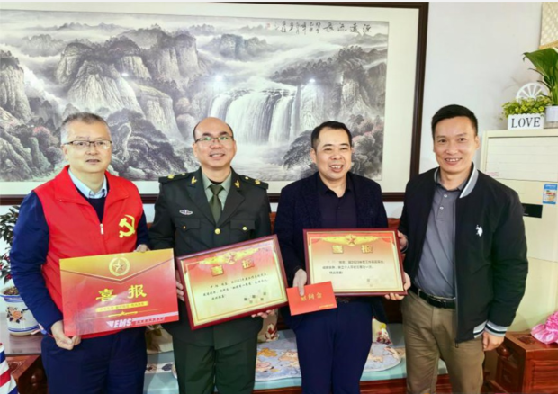 1月31日上午,东莞市东城街道武装部、东城退役军人服务中心和星城社区退役军人服务站等相关负责人组成“报喜团”,再次来到荣立三等功的东城好男儿尹阳家中,为其家人送上立功喜报和春节慰问,并对尹阳在部队上因表现杰出取得的荣誉表示祝贺和崇高的敬意,让现役军人尹阳的家属共享荣光!