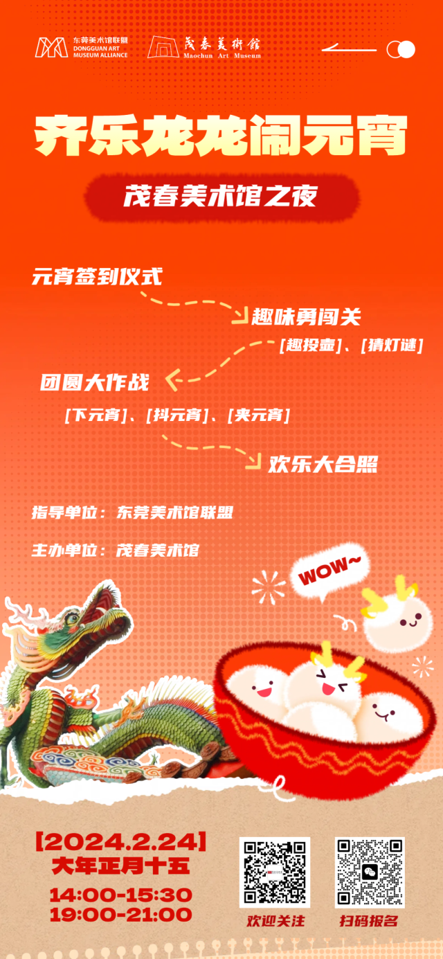 一元复始,大地回春,又是一年元宵团圆时。元宵佳节,为传承中华民族传统节日文化,营造欢乐喜庆的节日氛围,茂春美术馆特举办“齐乐龙龙闹元宵——美术馆之夜”活动,邀请广大市民群众欢聚一堂,共度元宵佳节,共享团圆之乐。