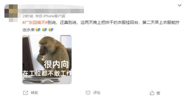 有网友表示:" 洗澡都不用开花洒,在空气里转一圈就行 "" 别说,还真别说,这两天晚上把烘干的衣服挂阳台,第二天早上衣服能拧出水来 ",还有网友调侃 " 福建人最近都开始用腮呼吸了 " 等等。