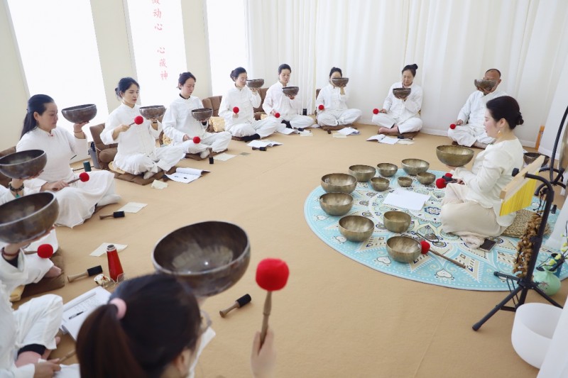 精神层面:颂钵音疗是通过敲钵的频率,使人可以很快进入一种深度的潜意识冥想状态,它能开启身体自愈之门,舒缓精神层面及肉体层面的痛苦。这样的状态我们身体和大脑就会有了链接,使我们更清晰的感知到内在的情绪与外在身体的不舒适,通过不断地聆听,它能开启身体自愈之门,舒缓精神层面及肉体层面的痛苦。使我们进入到一个深度放松的状态,在潜移默化中改善和消除了负面情绪,使心灵获得舒适感。