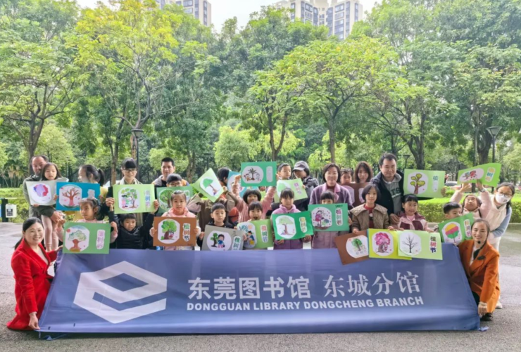 3月10日上午,东莞图书馆东城分馆在黄旗南香遇走廊举办《春神跳舞的森林》植树节亲子阅读活动,东城“爱悦读”故事人项目组成员带领20组亲子家庭在户外分享阅读,讲解植树节趣味百科知识,讲述绘本故事《春神跳舞的森林》,并就故事内容开展“春神到底是谁”的讨论,共绘“春神跳舞的森林”。