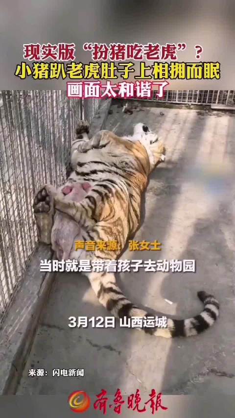 动物园里小猪趴在老虎肚子上睡觉【#动物园里小猪趴在老虎肚子上睡觉#】3月12日,山西运城。动物园里小猪趴在老虎身上睡觉。记者联系上拍摄者张女士,她称:小猪和老虎非常和谐,感觉很神奇,也很可爱。