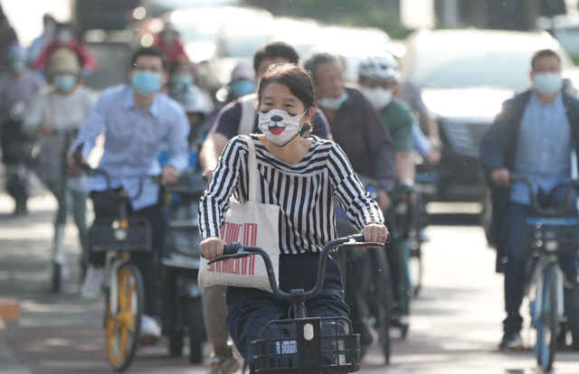 今天五月五日立夏日 大量北京市民今早骑行上班