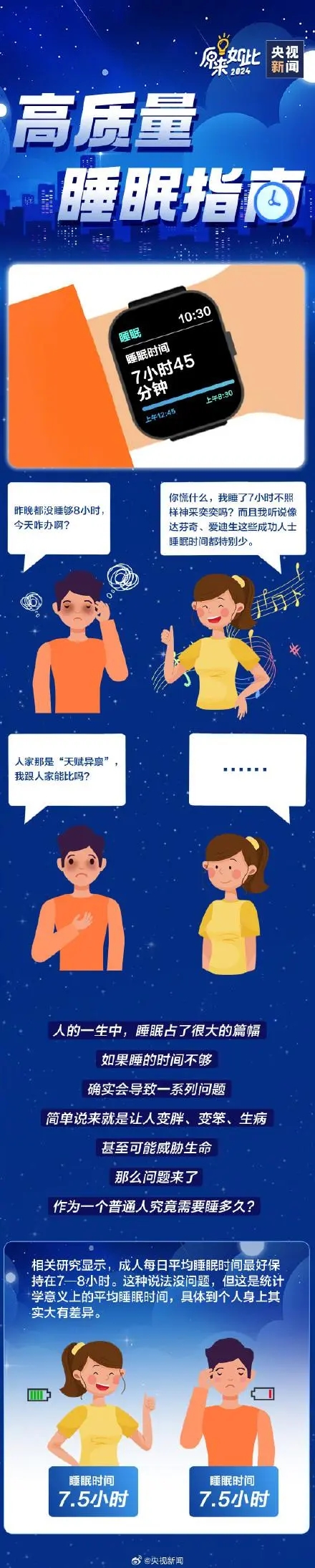 睡眠时间不够,可能让你变胖、变笨、生病,严重时甚至可能威胁生命。那么,普通人一晚必须要睡8小时才算够吗?同样的睡眠时长,为啥有人神采奕奕,有人却哈欠连天? 今天世界睡眠日,送你一份高质量睡眠指南祝你每天睡得饱,睡得香~~