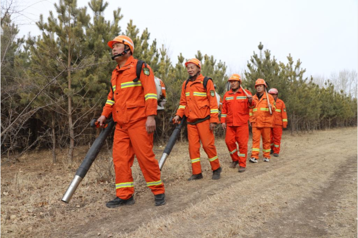在突泉县北河林场,防火员正在拿着防火用具开展巡逻工作。目前北河林场现有扑火设备10余台,防火队员20人,进入防火期,防火员们实行24小时值班值守制度,对重点区域进行不间断巡查,确保从源头上杜绝火灾隐患。