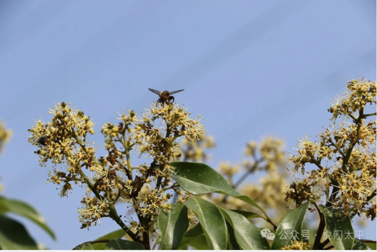 农场里的荔枝树随山势而种,漫山遍野,但开花情况不一。有的荔枝树开花较多,蜜蜂飞上细如米粒的荔枝花,忙着采蜜授粉。