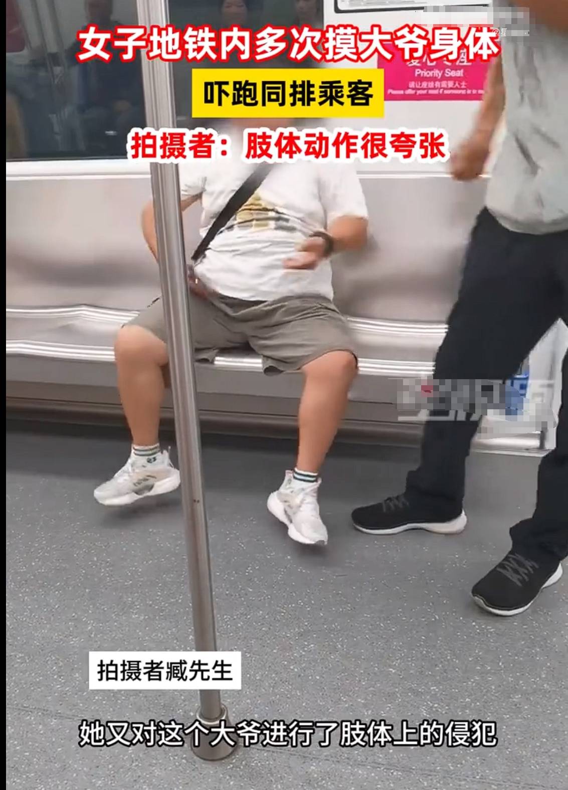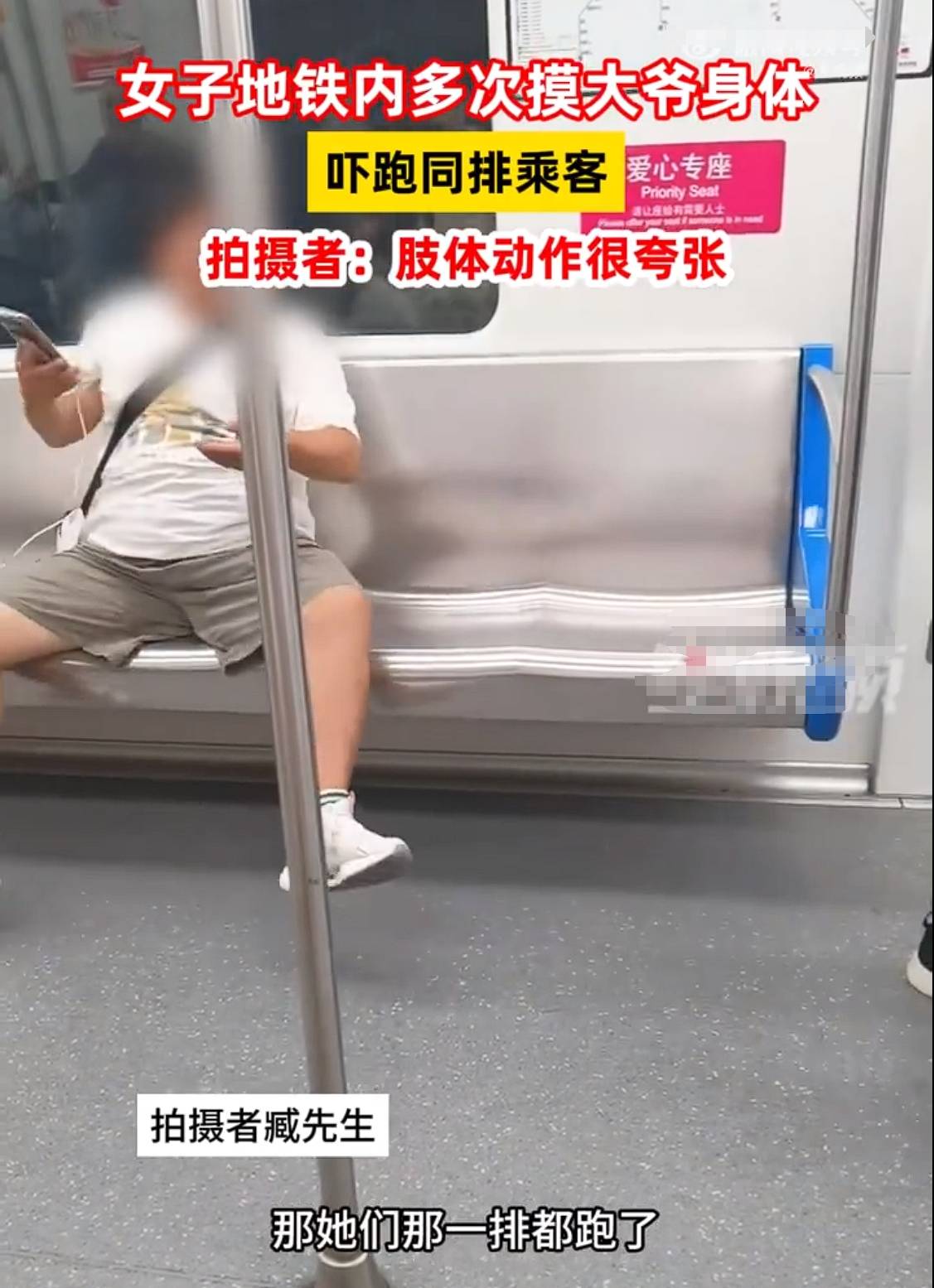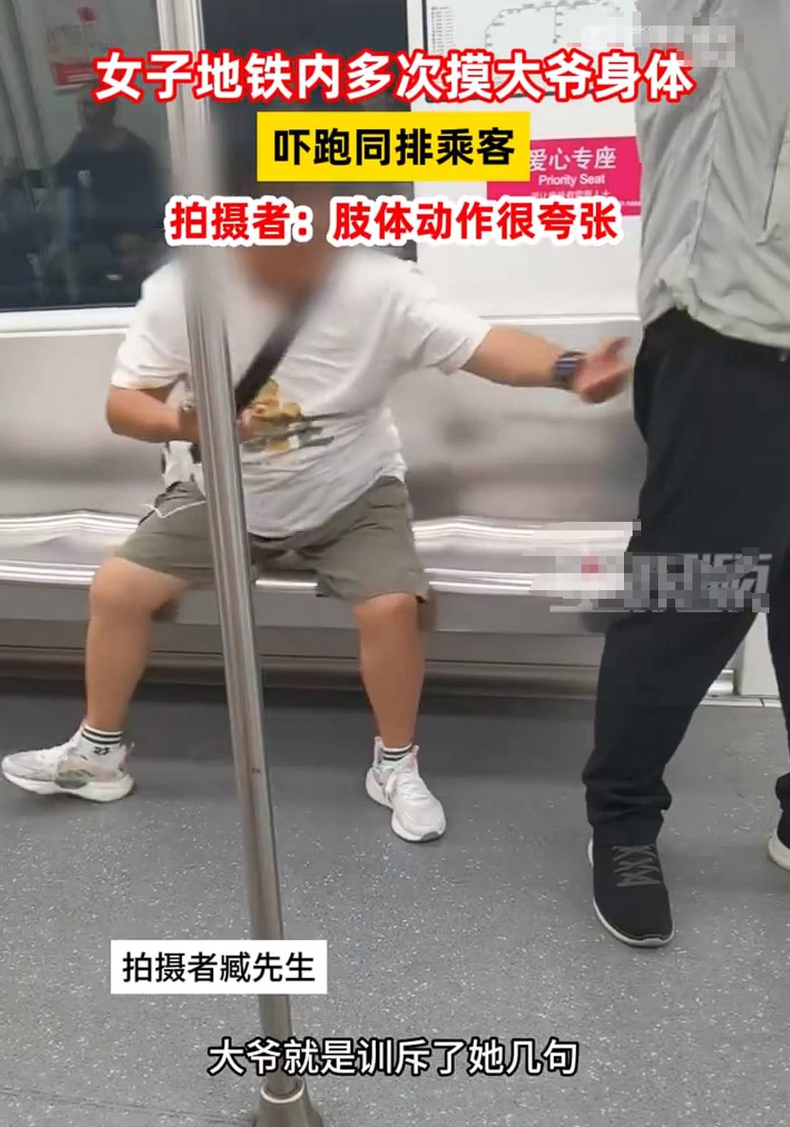 据目击者臧先生描述,涉事女子从上车开始便表现得与众不同,她的肢体动作夸张且大声讲电话,这些行为已足够引起周围乘客的注意。但随后发生的事情则远远超出了正常社交范围的界限——女子对一位坐在座位上的大爷进行了不当的肢体接触,即便在大爷起身制止后,她依然继续这种侵犯行为。这一连串的举动导致车厢内气氛紧张,周边乘客纷纷避之不及,直至大爷对其进行训斥并离开车厢,事件才暂时平息。