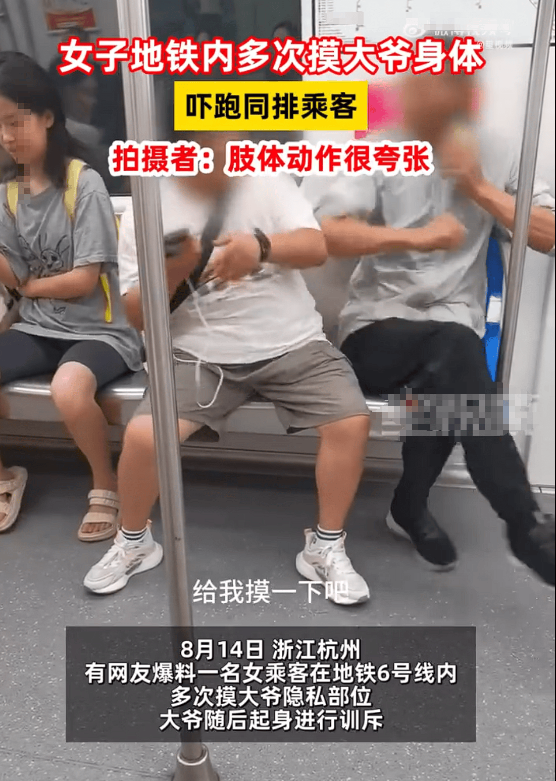 在当今社会,公共场所的文明行为和相互尊重是构建和谐社会的重要基石。然而,近日在浙江杭州地铁6号线发生的一起事件,却让人不得不重新审视公共空间中的个人行为规范及其对他人造成的影响。据网友爆料,一名女性乘客在车厢内对一位老年男性乘客做出了不当的身体接触,多次摸大爷隐私部位,这一事件不仅引发了车厢内的恐慌,也触动了公众对于公共道德和法律边界的敏感神经。