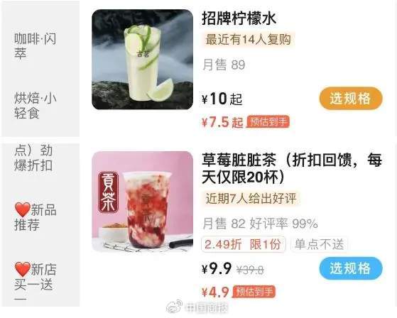“10元以下”成了各大新茶饮品牌“厮杀”的重点区间。一直在低价区间深耕的蜜雪冰城,凭借4元柠檬水、2元冰激凌、1元冰杯等,早已把很多消费者“圈粉”。书亦烧仙草推出新品,售价大都在10元以下。部分地区,古茗柠檬水从10元降至4元。茶百道的酸奶紫米露打折后只要2.9元一杯,喜茶也曾推出限时活动,“纯绿茶妍后”4元一杯。