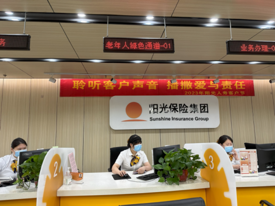 一方面,阳光保险在线下门店开通老年人绿色服务通道,工作人员全程指引老年客户优先办理业务。各网点设置“敬老服务区”,配备爱心座椅、老花镜、轮椅和急救药品等设施,让老年人畅通办理保险业务。
