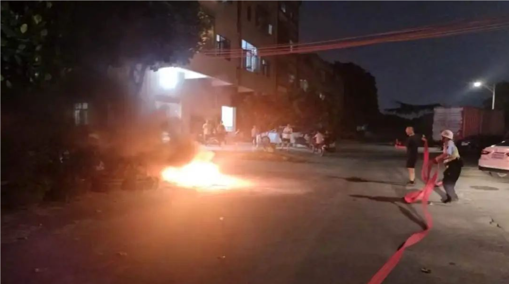 很快,这辆电动自行车便猛烈燃烧起来,火光四射,浓烟滚滚。正在附近巡逻的辅警邝厚光和罗炎纲发现火情后,立即取出随身携带的灭火器进行初步扑救,并紧急呼叫总台请求消防支援。消防队员迅速赶到现场,与辅警紧密配合,最终成功将大火扑灭,避免了火势进一步蔓延。