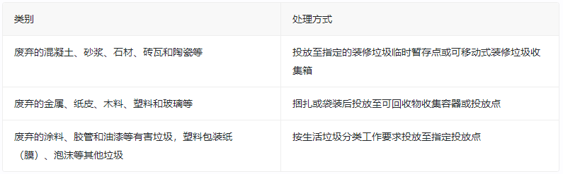 装修垃圾应按照“源头分类、定点投放”的要求规范处理:
