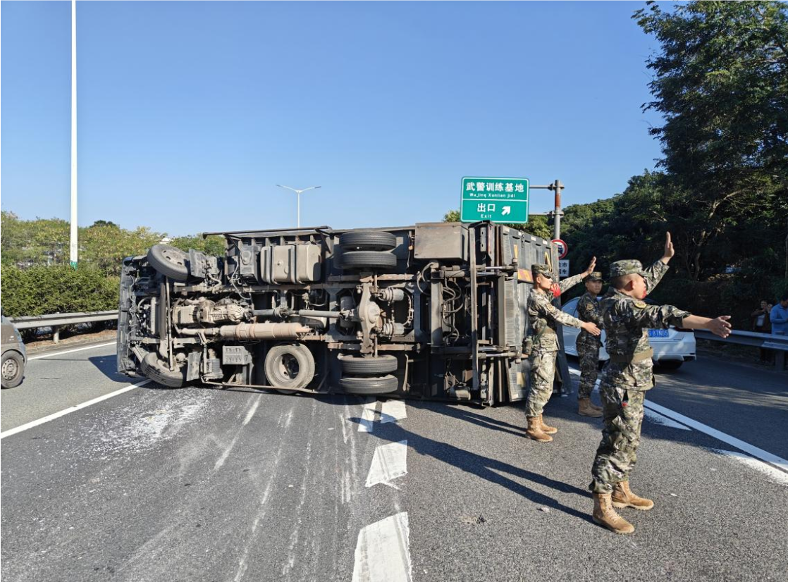 - 中队长黄伟业立即组织官兵展开救援,并迅速联系当地交警部门。