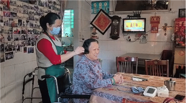 丘存娣的护理之路并非一帆风顺。最初接触这项工作时,她面临着诸多挑战,包括难以适应周而复始的护理工作以及服务对象家中的恶劣环境。然而,她凭借坚定的职业信念和无私的奉献精神,逐渐克服了这些困难。她不仅努力提升自己的护理技能,还将每一位服务对象视为亲人,用温暖的话语和贴心的行动驱散他们的孤独感。她深知,护理工作不仅仅是身体上的照料,更是心灵的慰藉。她常常陪老人聊天,用温暖的话语驱散他们心中的孤独。在老人身体不适时,她更是毫不犹豫地承担起更多的责任,为他们提供洗澡、洗头发、洗衣服等服务,并陪伴他们聊天,让他们在病痛中感受到温暖和关怀。辛勤付出不仅改善了老人们的生活质量,也赢得了周围人的赞誉。面对这些赞誉,她却显得格外谦逊,认为自己只是做了应该做的事。她的故事,正是沙田镇居家养老服务中心每一位护理员无私奉献、爱岗敬业精神的缩影。