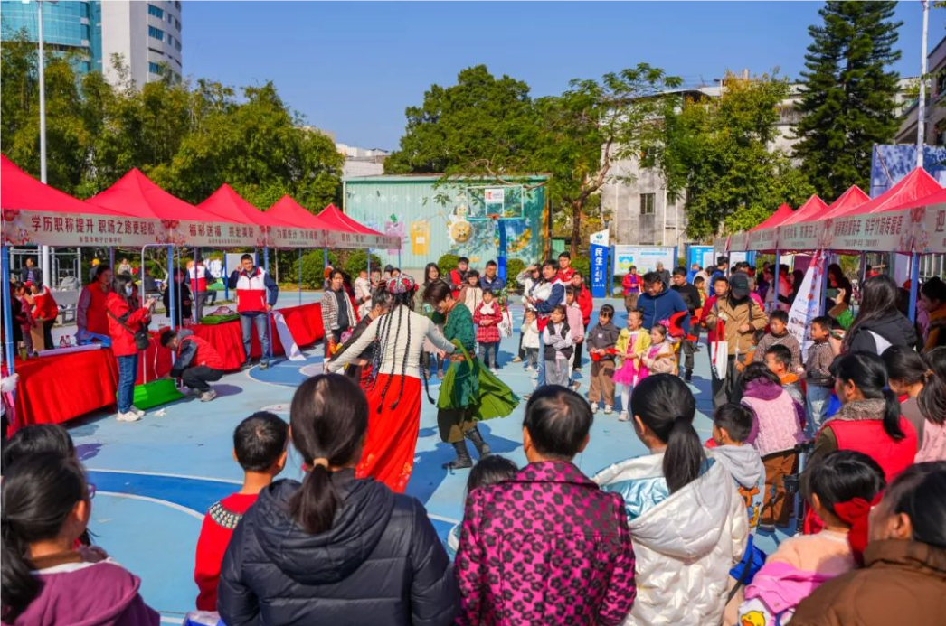 除了文化体验,活动还设置了美食摊位,为孩子们准备了甜蜜的棉花糖、香气四溢的爆米花和精致的糖画等美味小吃,让孩子们在品尝美食的同时,感受节日的欢乐氛围。舞台表演也是本次活动的一大亮点。广东省社区青少年宫(莞城多维宫)、小袋鼠幼儿园、武当北派武术团等多个表演团队登台献艺,通过载歌载舞的形式,为居民们呈现了一场精彩纷呈的文艺演出,吸引了大量居民驻足观看,共享欢乐时光。通过这次活动,社区居民提前感受到了2025蛇年春节的节日氛围,同时也加强了社区与居民之间的交流与互动。无论是书写春联、欣赏文艺表演,还是享受惠民服务,居民们都在这充满文化氛围的环境中度过了一个难忘而充实的节前时光。