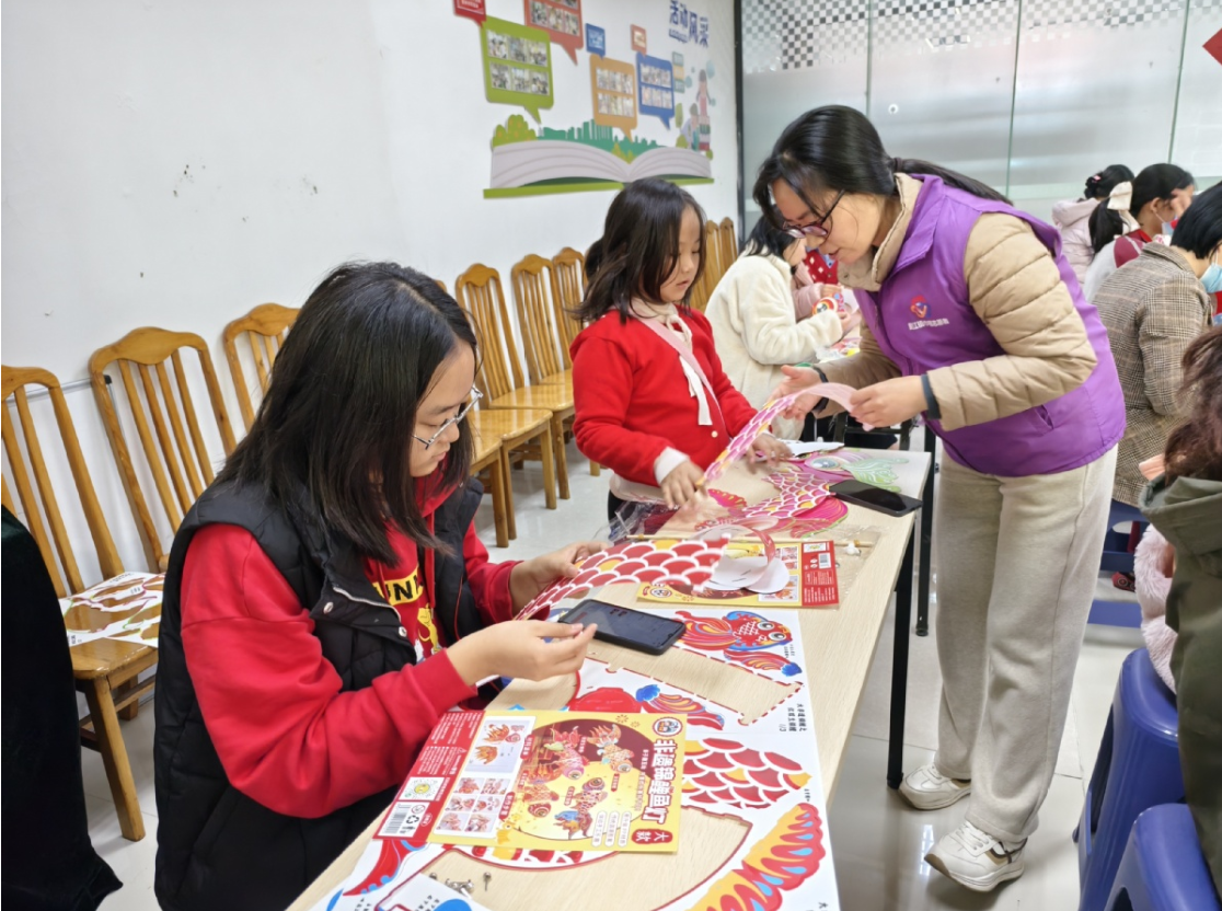 活动的重头戏是非遗锦鲤鱼灯制作环节。在妇联社工及志愿者的指导下,家长和孩子们一起动手,用灵巧的双手将一块块彩纸、竹条变身为一只只活灵活现的锦鲤鱼灯。孩子们在制作过程中,不仅学会了传统手工艺的制作技巧,更深刻体会到了传统文化的魅力与价值。当一盏盏色彩斑斓、形态各异的锦鲤鱼灯在亲子阅读室内点亮时,整个空间仿佛被点亮了希望与梦想的光芒。