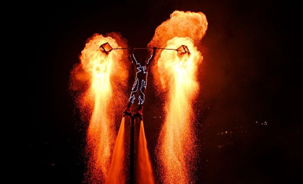 2月12日晚,由中共东莞市委宣传部指导,东莞市文化广电旅游体育局、松山湖管委会主办,东莞市文化馆、松山湖宣传教育文体旅游局、东莞市松山湖控股有限公司承办的“穿越·松山湖”2025年东莞市元宵大型沉浸式游园会盛大开幕。市民和游客在松山湖“零距离”体验了传统与现代的完美结合,亲身感受了非物质文化遗产的独特魅力。活动当晚,数十个特色非遗项目各显神通,为大家带来了一场独特的视觉盛宴。东莞本土特色非遗项目如清溪麒麟舞、长安锦厦女子龙舞、横沥草龙舞、大朗巷头木偶等依次亮相,非遗醒狮、英歌舞、非遗古装展示、非遗变脸等异地特色非遗项目压轴出演,让观众与非遗文化进行了近距离互动。随后,表演队伍们围绕整个松山湖通湖礼廊与悠兰里ULAND园区进行全场大巡游活动,掀起了现场阵阵高潮。活动间隙,一场精彩绝伦的水上火壶表演拉开序幕。火壶飞舞,流光溢彩,象征着红红火火、蒸蒸日上。民间艺人手持燃烧的火壶腾空而起,在夜空中划出弧线,铁壶随着双手的晃动,将星火散落在夜空中,画出一道道惊艳的火舌。